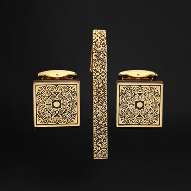 Classic Men’s Cufflinks & Tie Clip Set – Rose Print Luxury Metal Accessories