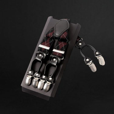 Think about the occasion and your personal style. Leather-ended suspenders offer a classic, dressy look — ideal for formalwear. Clip-on styles are versatile and easy to wear daily. We offer both in various colors, patterns, and widths.