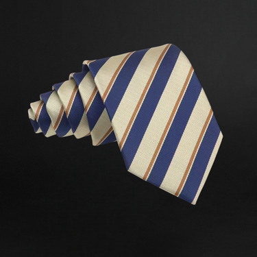 Beige and Blue Striped Classic Tie – 3.15 Inch | Timeless Necktie