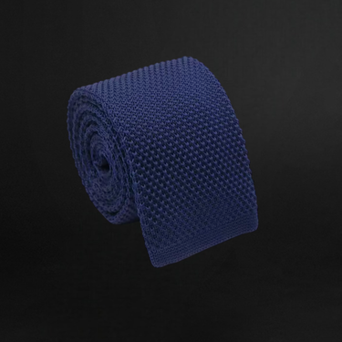 Dark Blue Knitted Necktie – Refined Solid Texture for Men